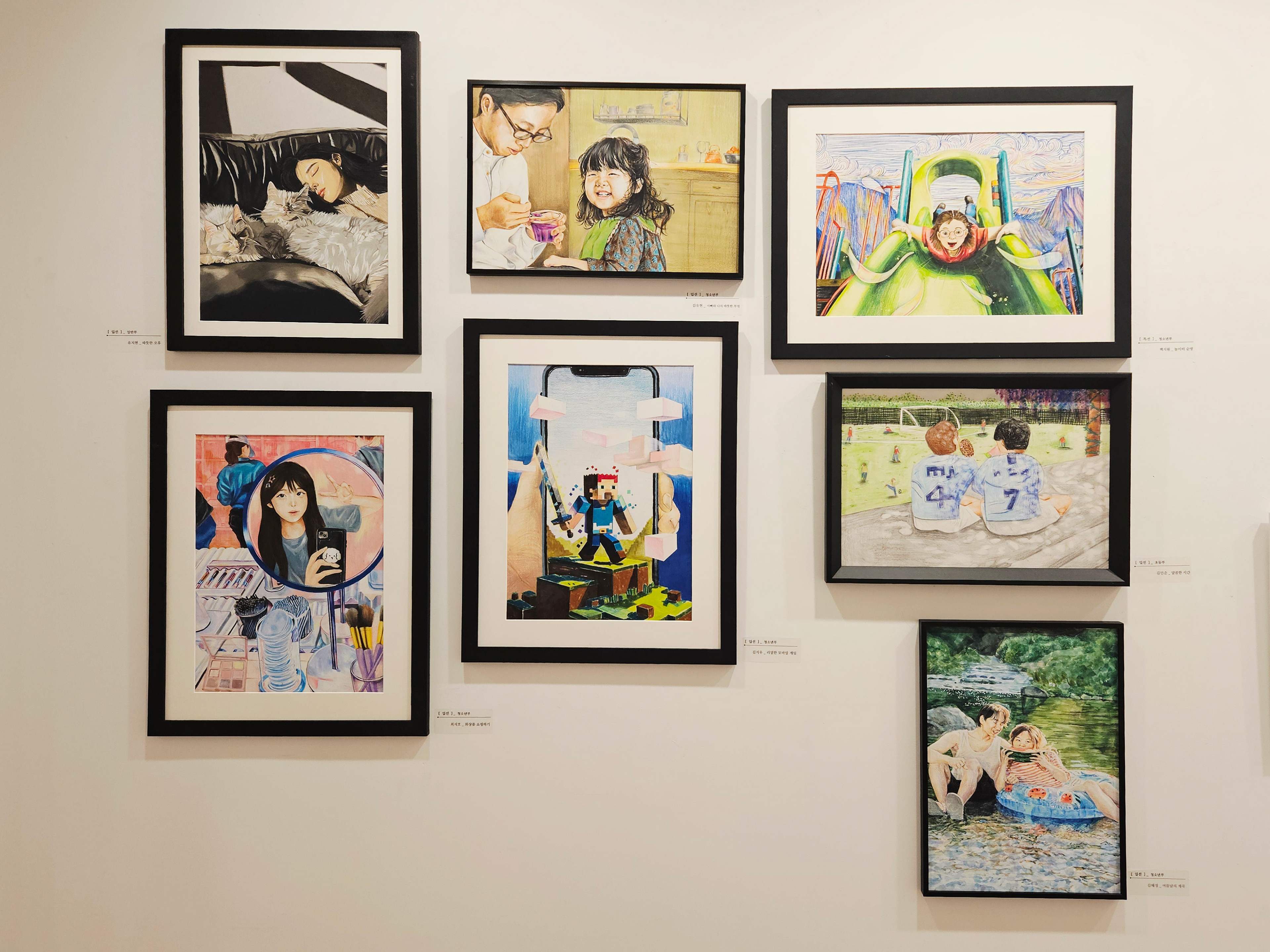 출품작을 살펴보면 세대별 표현의 결이 다채로웠습니다. 초등학생의 작품에서는 솔직한 색감과 과감한 구도가, 청소년 작품에서는 집중력 있는 관찰과 묘사력이 돋보였습니다. 성인 부문에서는 레이어링과 블렌딩을 통한 깊이 있는 표현(나무의 결, 천의 주름, 유리의 투명감) 그리고 빛의 방향성을 섬세히 포착한 작품들이 인상적이었습니다. 이런 흐름은 색연필이 단지 입문 매체가 아니라, 완성도 높은 예술 표현에 충분히 도달할 수 있는 도구임을 다시 한번 증명합니다.