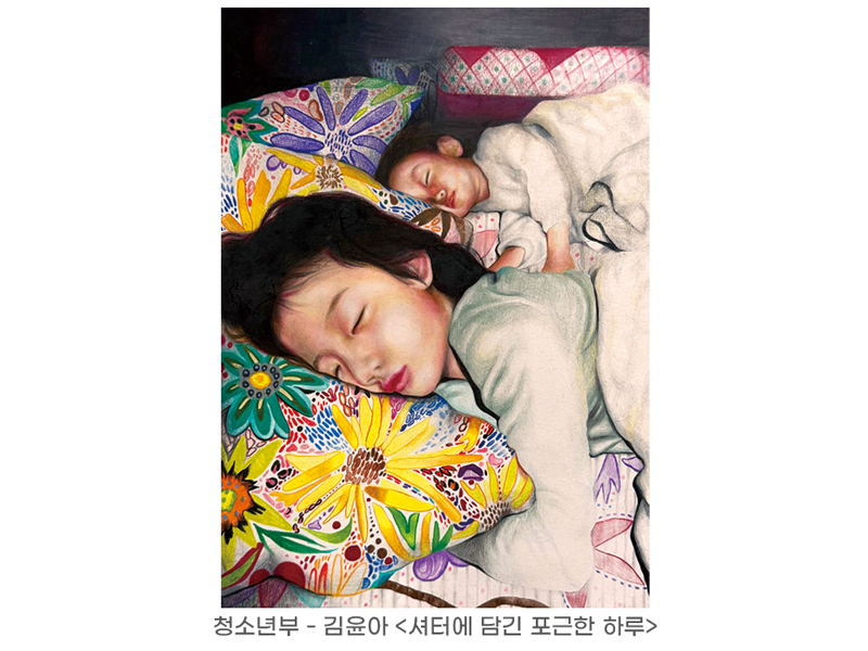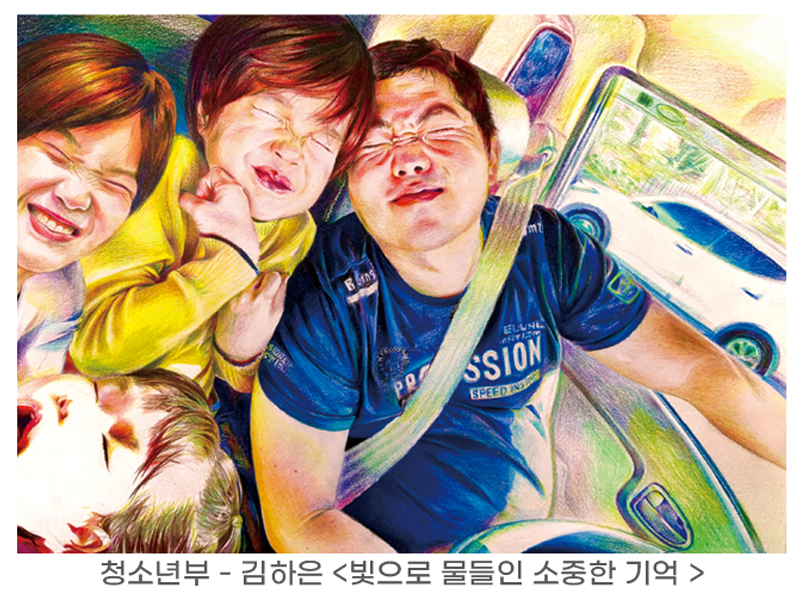 이번 공모전의 주제는 ‘우리들의 따뜻하고 소중한 일상’이었습니다. 저는 화려한 장면보다 매일의 삶 속에서 발견되는 온기, 관계, 기억이야말로 색연필이 가장 잘 담아낼 수 있는 세계라고 믿습니다. 색연필은 접근성이 높고, 손끝의 미세한 압력 변화까지도 담아내는 섬세한 매체입니다. 그래서 식탁 위 가족의 조용한 대화, 등굣길 아침빛이 스치는 가로수길, 동네 골목의 계절감, 반려동물과 눈을 맞추는 순간 같은 장면들이 색의 층과 선의 결로 포근하고 풍성하게 펼쳐졌습니다.